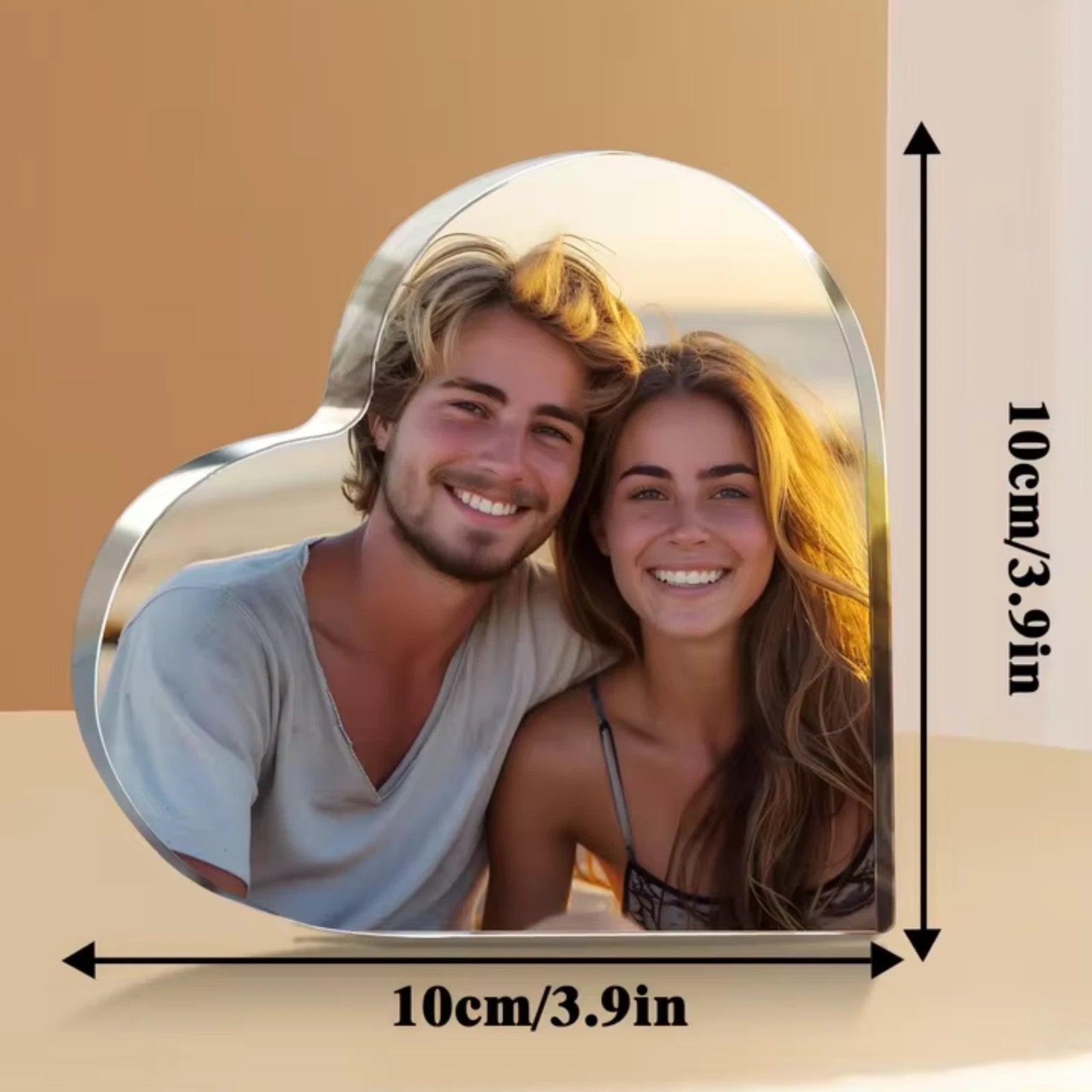 Capture your favourite memories in a stunning keepsake with our Personalised Acrylic Heart Photo Display. Printed in vibrant detail on crystal-clear acrylic, this custom heart is perfect for celebrating love, friendship, or special moments. Measuring 10cm x 10cm (3.9in x 3.9in), it’s the ideal size for desks, shelves, or bedside tables. A thoughtful and lasting gift for birthdays, anniversaries, weddings, or Valentine’s Day.